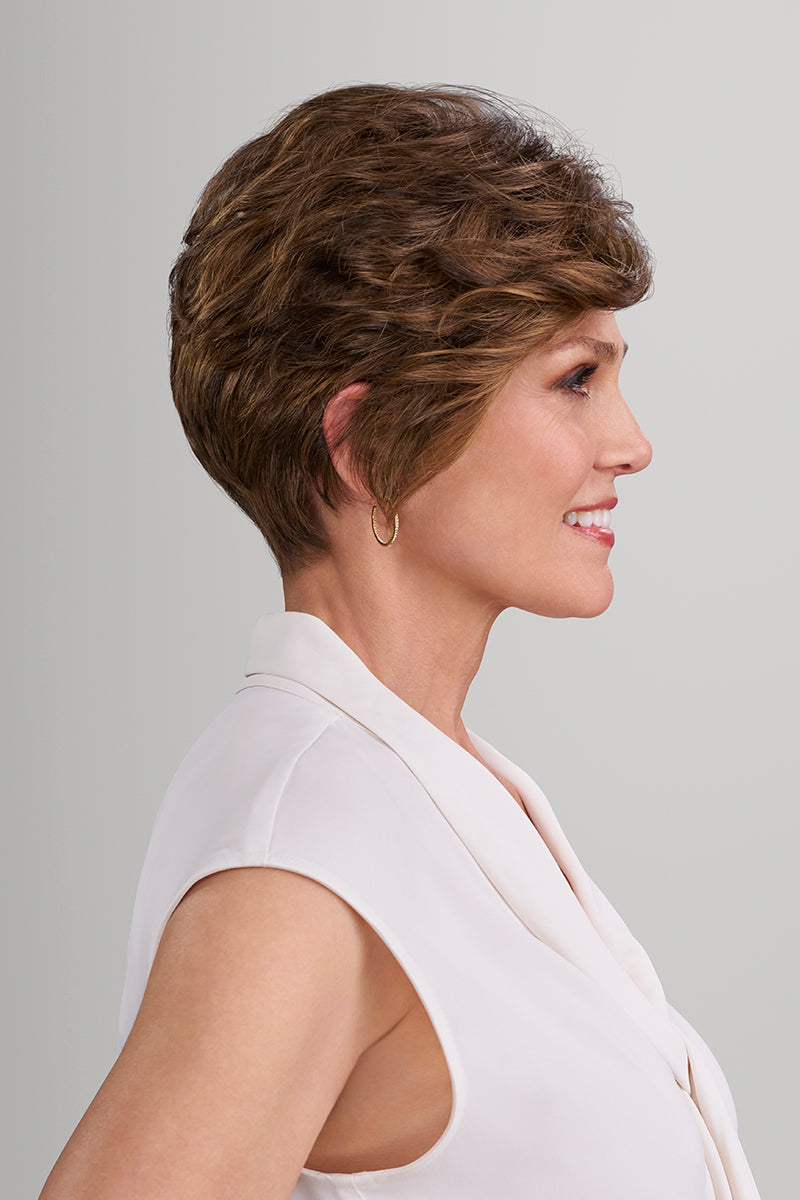 Lana is what happens when high-end craftsmanship meets effortless charm. This breezy pixie cut from Jon Renau is part of their salon-exclusive Professionnel Collection—you won’t find it sold online. It’s lightweight, beautifully constructed, and surprisingly affordable for a wig with premium features.